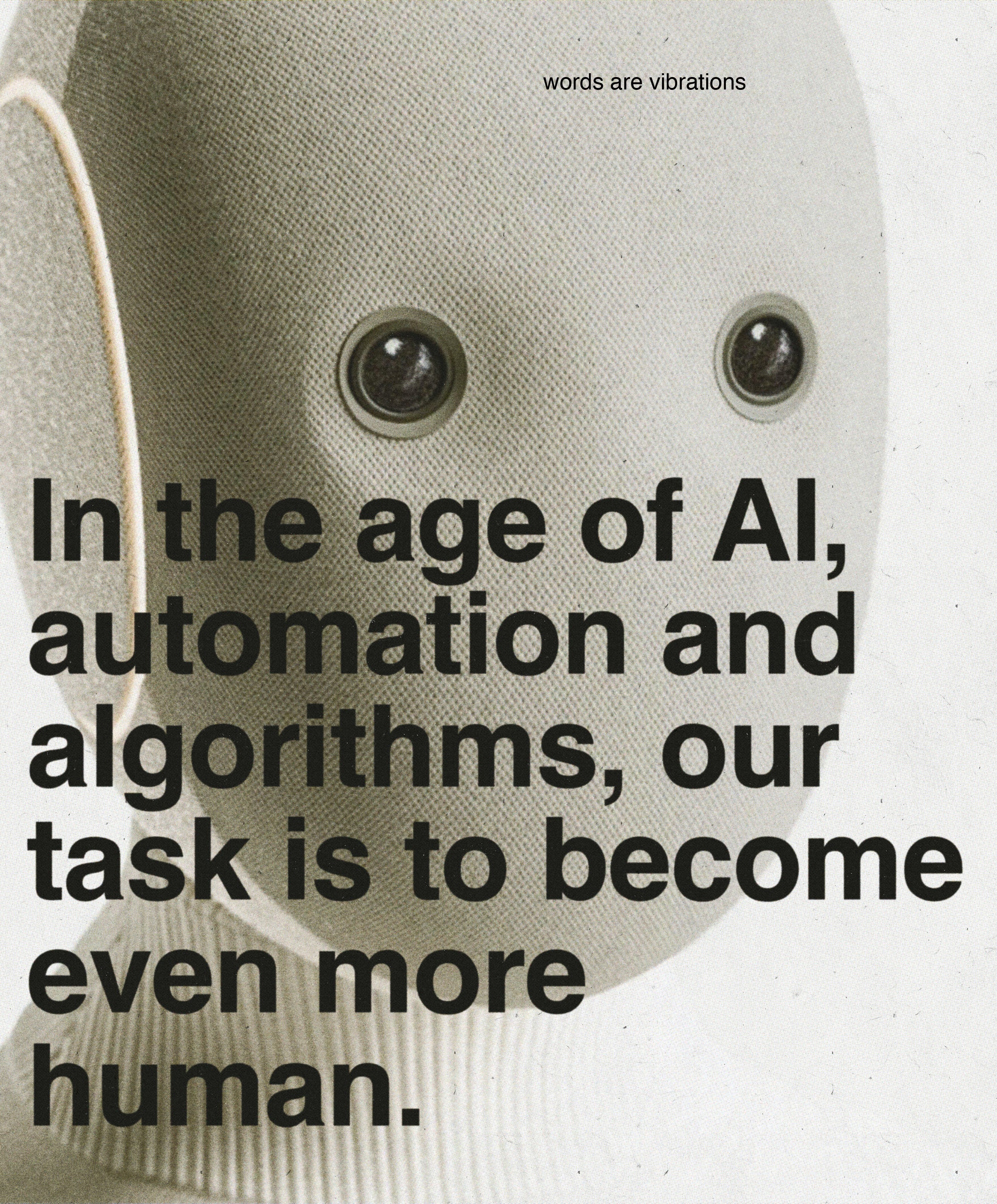 As the world becomes increasingly fast, artificial, and automated, it’s important that we don’t lose touch with our humanity. We are not alive to be data points in an AI engine. We are alive to make art, make love, dance, sing, and make memories.